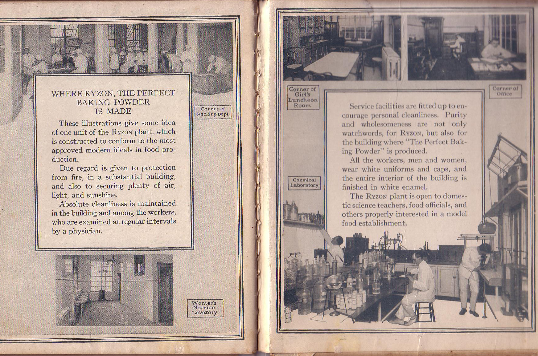 First up, from 1918, the Ryzon Baking Book by Marion Harris Neil. This is an unusual item – a hardcover, with color illustrations inside. Here’s the cover (click for larger version):