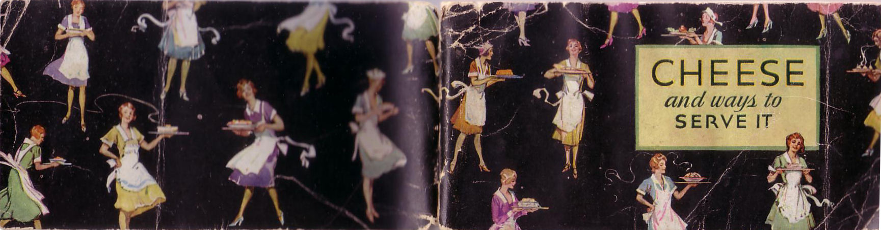 First up, from 1931 and the Kraft-Phenix Cheese Corporation, “Cheese and Ways to Serve it.” The covers feature perky apron-wearing housewives – I’m pretty sure that each of them is different.
