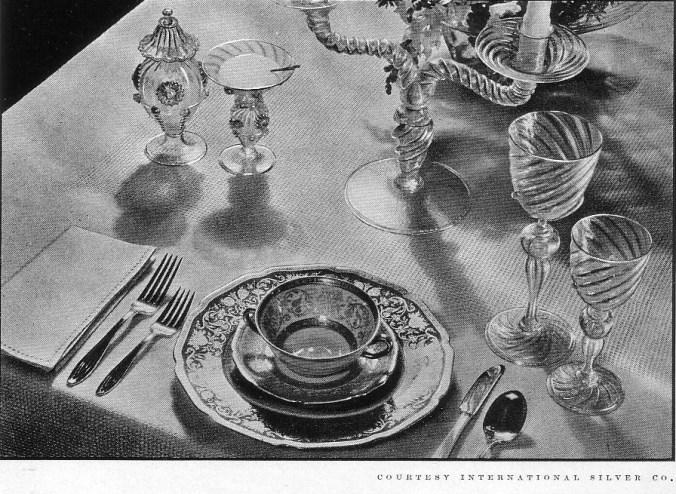 Then there are the recipes, the “Suggestions for the Modern Hostess,” some menus, and “For the Woman With Small Children” (“Every mother knows that her first duty to her children is the safeguarding of their health and the building of fine strong bodies”). The image below illustrates what it fondly called an “Informal Dinner.”